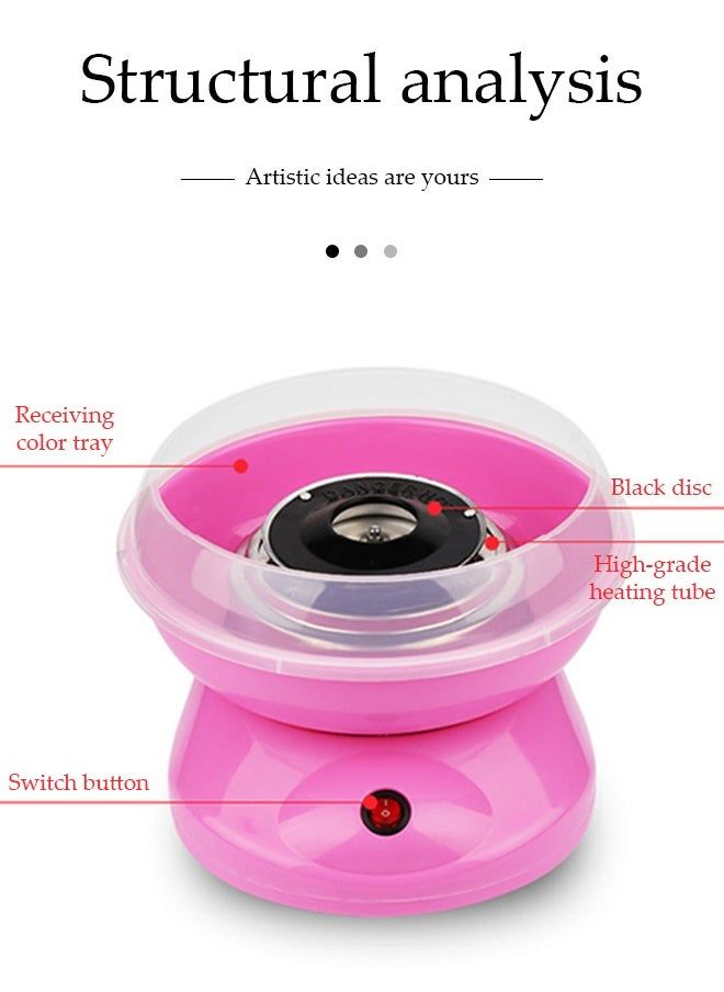 Size: Our cotton candy machine measures 26 * 26 * 13cm, with a compact size and light weight, designed specifically for home use., Easy to use: One click control, very simple operation. The center head of the marshmallow machine begins to rotate, forcing liquid sugar through its tiny perforations. As soon as the sugar threads come into contact with air, they cool and re solidify, resulting in the formation of a network of sugar threads in the collection bowl., Safety design: This cotton candy machine was designed with safety and simplicity in mind, featuring simple